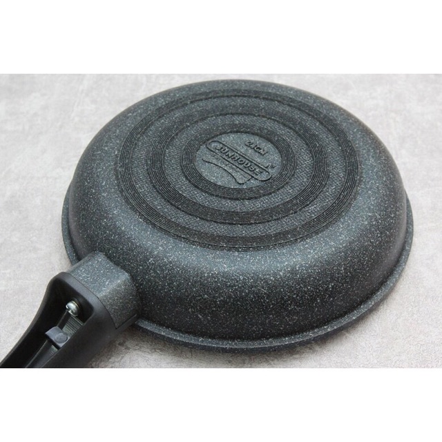 🔸Đáy chảo phủ đá hoa cương dễ vệ sinh, được thiết kế hoa văn vòng tạo độ ma sát giữa chảo và bếp.