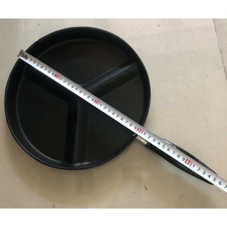 - Chảo 3 ngăn lòng chảo được thiết kế thành 3 ngăn riêng rẽ giúp bạn có thể chiên, rán nhiều loại thức ăn khác nhau cùng một lúc. Hơn nữa với thiết kế hình tròn và hình bán nguyệt giúp bạn có thể sáng tạo, bày biện, trang trí đồ ăn một cách đẹp mắt từ nay bữa ăn nhà bạn không còn đơn điệu nữa.