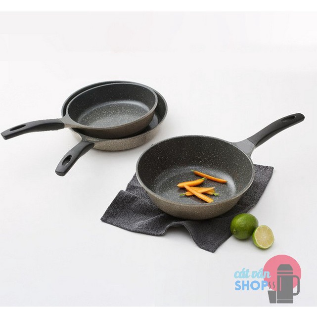 Chảo đá rán xào Lock&Lock Stone chống dính dùng bếp từ 24cm 26cm 28cm LCA6243 LCA6263 LCA6283