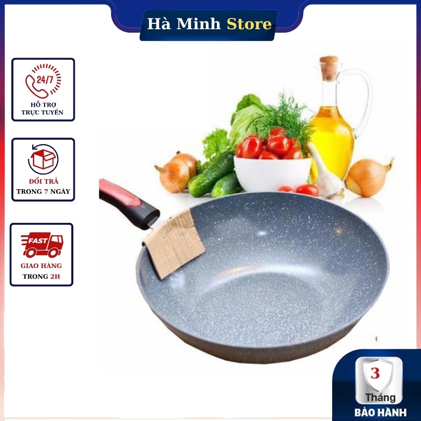 Chảo Đá Sâu Lòng Ceramic Size 32 Siêu Chống Dính, An Toàn, Không Đổi Màu, Dùng Cho Tất Cả Các Loại Bếp, Gia Dụng Hà Minh