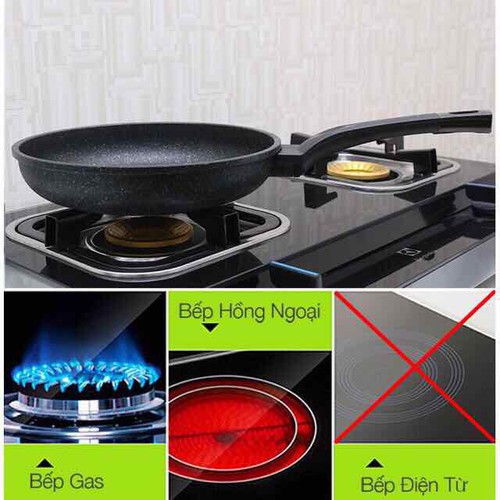 🔸Chảo đá Sunhouse sử dụng được cho bếp gas, bếp hồng ngoại và không sử dụng được cho bếp từ.