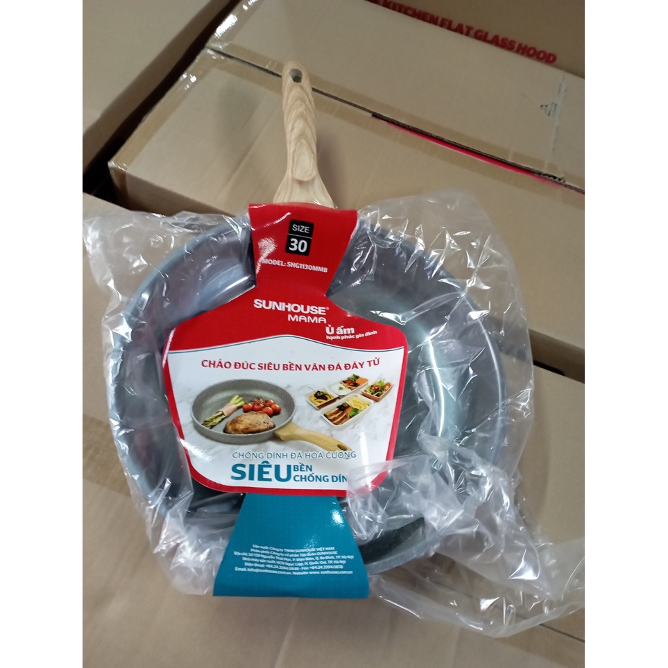 Thông số kỹ thuật: Chảo đúc siêu bền vân đá đáy từ SUNHOUSE MAMA, Chảo chống dính đá hoa cươngKích thước: 30cm