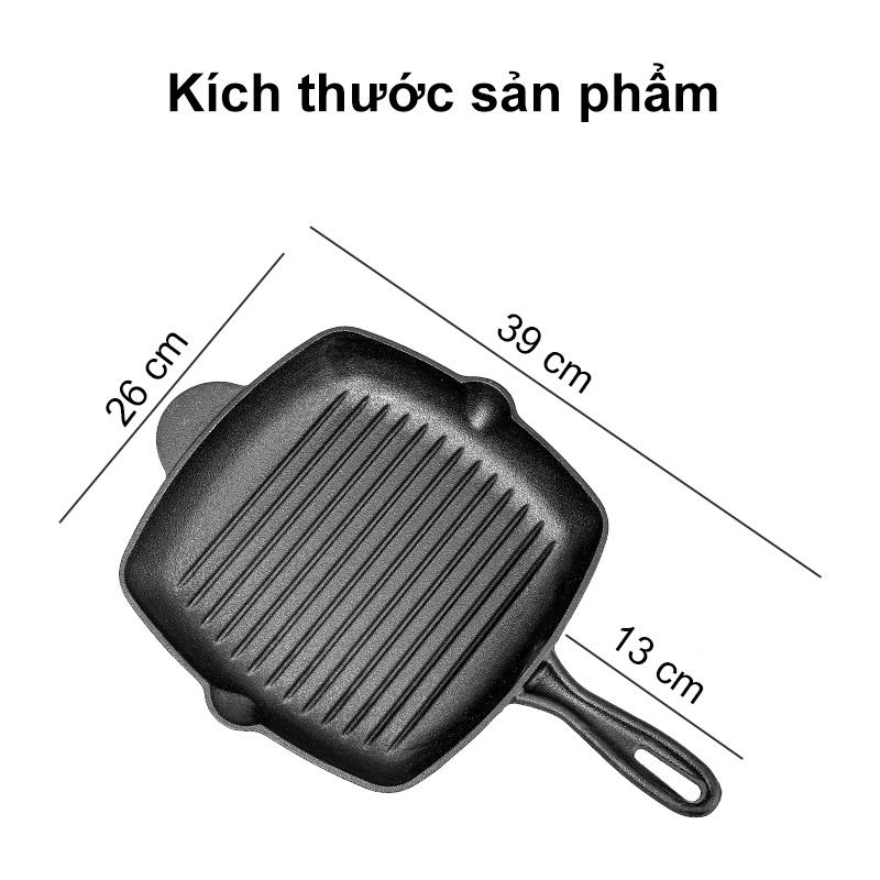 Chảo Gang Thô Đúc Thủ Công Nguyên Khối - Chảo Gang Truyền Thống Làm Bít Tết Siêu Bền Dùng Được Với Bếp Từ VT124