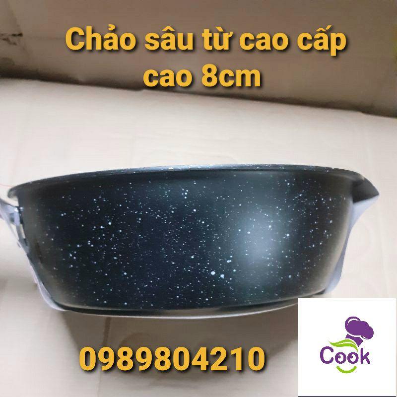 Chảo hợp kim vân đá đáy từ loại nông và sâu size 20,22,24,26,28,Chảo ramos đun bếp từ đủ size