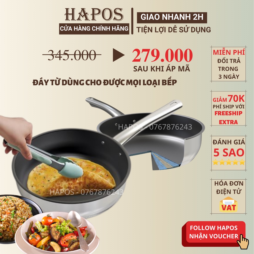 ✅ Chảo được thiết kế đẹp mắt với mặt ngoài bằng inox cao cấp, có khả năng hạn chế trầy xước và bám bẩn. Lòng chảo tráng chống dính màu đen đem lại tổng thể đơn giản nhưng không kém phần bắt mắt.