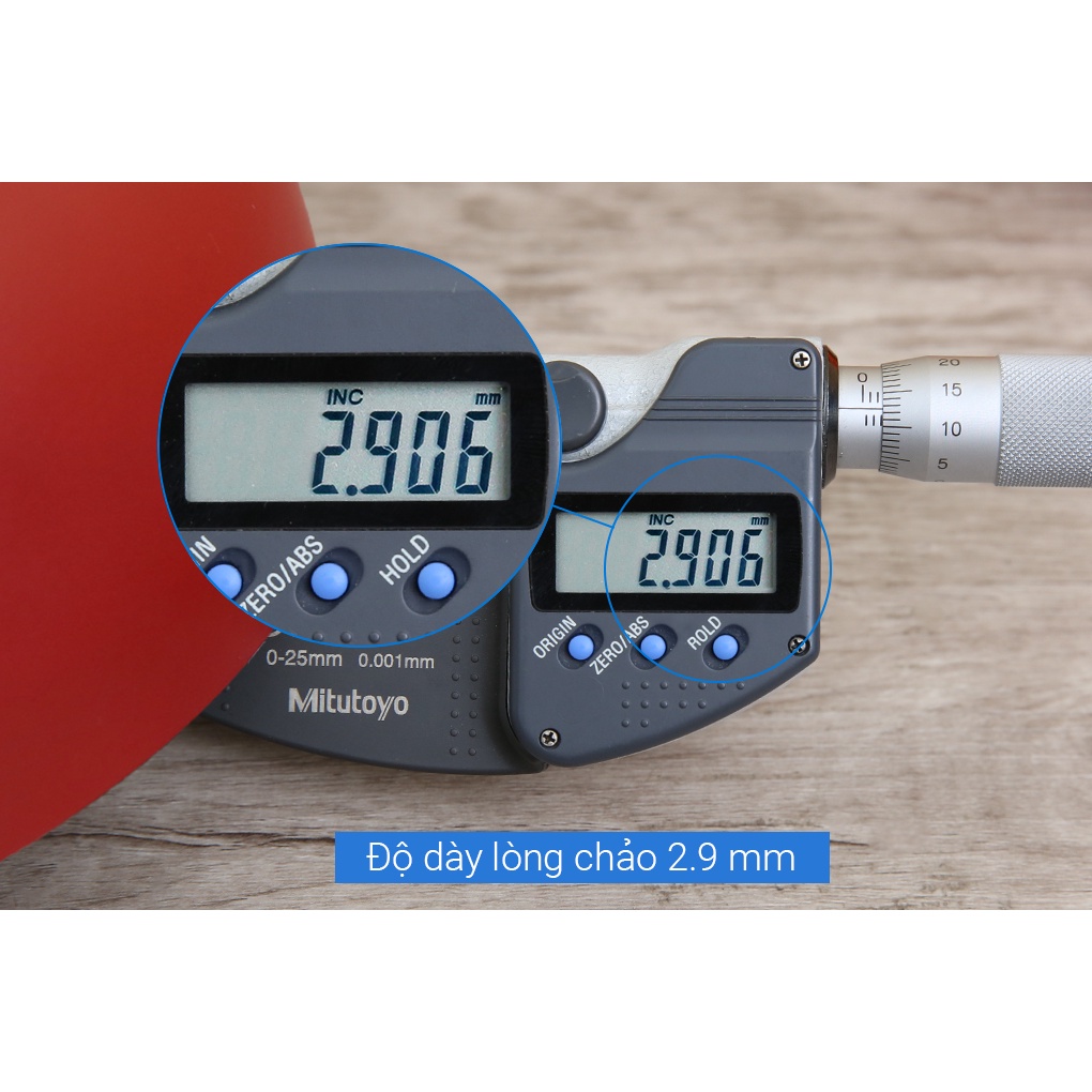 •Chất liệu hợp kim nhôm dày 2.906 mm cho chảo cứng chắc, chống móp méo cực tốt, độ bền sử dụng cao, nấu ăn ngon