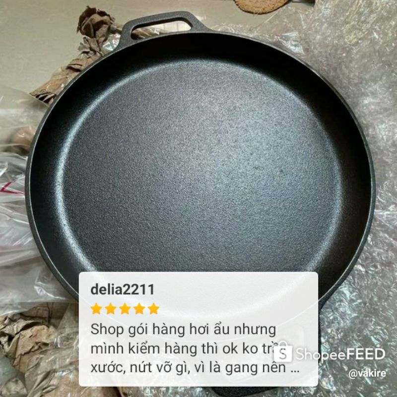 Chảo Gang Nướng Thịt BBQ Bánh Xèo Pizza Chống Dính Tự Nhiên 28cm Đáy Phẳng Kiểu Nhật Dùng Được Bếp TừChảo đáy phẳng kích thước 28cm nặng 2kg