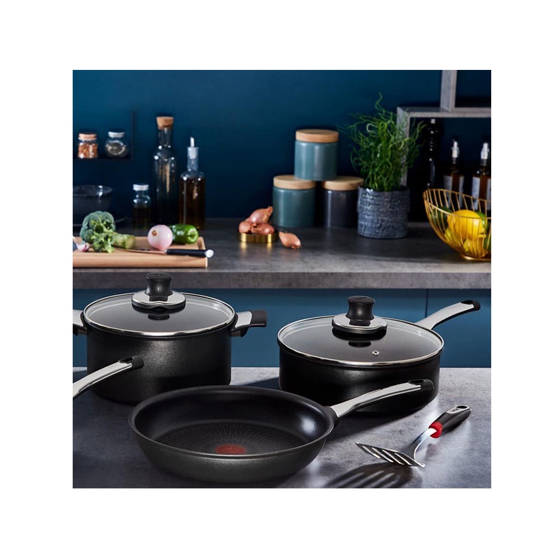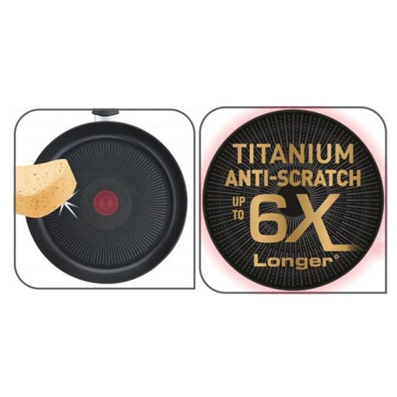 - Lớp phủ chống dính và chống xước titan mới, là kết quả của nhiều năm phát triển, có tuổi thọ gấp 6 lần so với các lớp phủ tiêu chuẩn của Tefal.