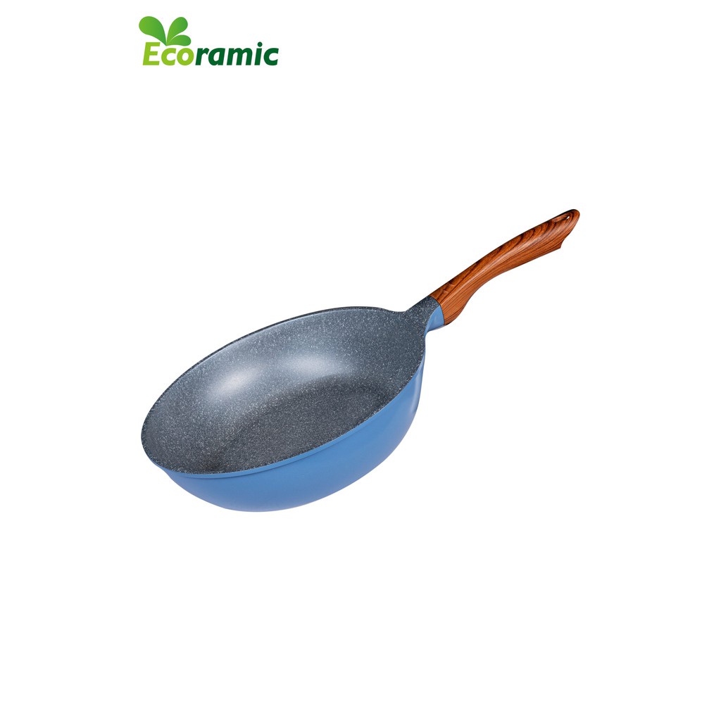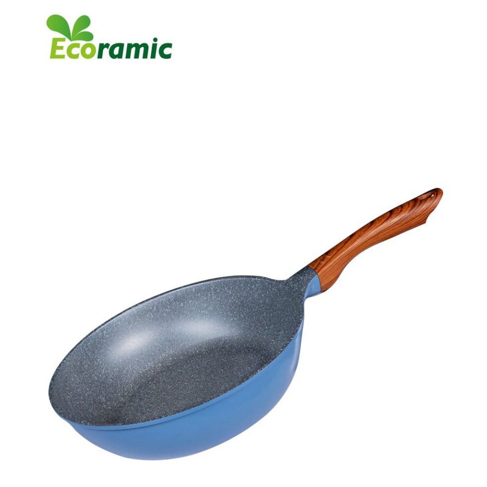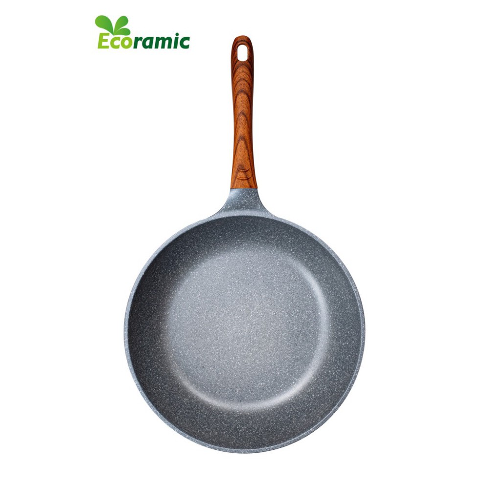 Chảo sâu lòng vân đá ECORAMIC ( 22cm, 24cm, 26cm, 28cm) quai gỗ cách nhiệt