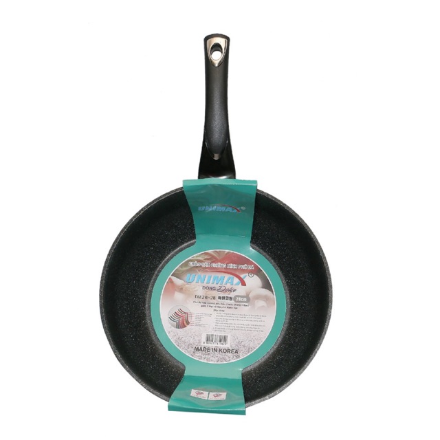 Chảo đá Hàn Quốc Unimax DM2W-28 có xuất xứ từ Hàn Quốc được nhập khẩu và phân phối tại Việt Nam nên rất đảm bảo về chất lượng cũng như mẫu mã sản phẩm. Chảo với ưu điểm nổi bật là không bám dính thức ăn, chống trầy xước, dễ dàng rửa sạch dầu mỡ bám dính, tiết kiệm thời gian và công sức cho các bà nội trợ.Chảo được làm từ nhôm nguyên chất. Lớp phủ Marbl 5 lớp cứng như đá hoa cương, có khả năng diệt khuẩn, không có chất PFOA (chất gây ung thư), đem lại an toàn cho gia đình bạn. Chảo có cán được làm bằng nhựa Bakelite chống cháy, chịu nhiệt giúp các bà nội trợ nấu ăn một cách tiện lợi hơn, không lo bị “bỏng” khi nấu nướng.