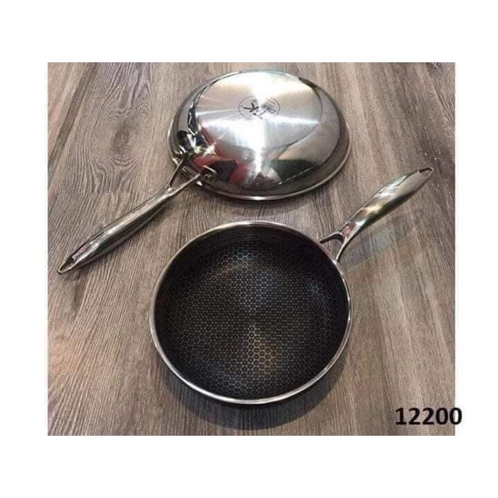 Thiết kế mặt chảo tổ ong, chống dính tự nhiên, xịn cực mà có dùng búi sắt rửa cũng ko bong trầy đâu ý.