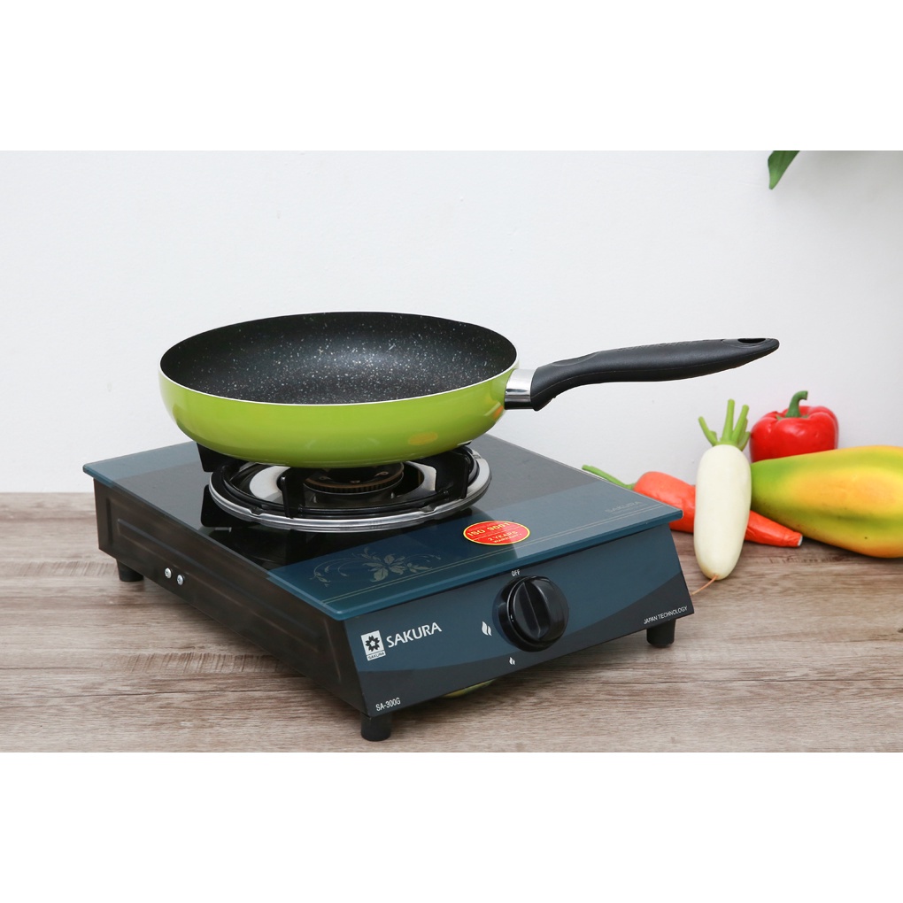 Kiểu dáng hiện đại, màu sắc tươi sáng: Bề mặt bên ngoài chảo tráng lớp sơn tĩnh điện màu xanh/đỏ sáng bóng, hạn chế trầy xước và bám bẩn. Lòng chảo phủ vân đá hoa cương bền đẹp, phù hợp với không gian bếp trẻ trung.