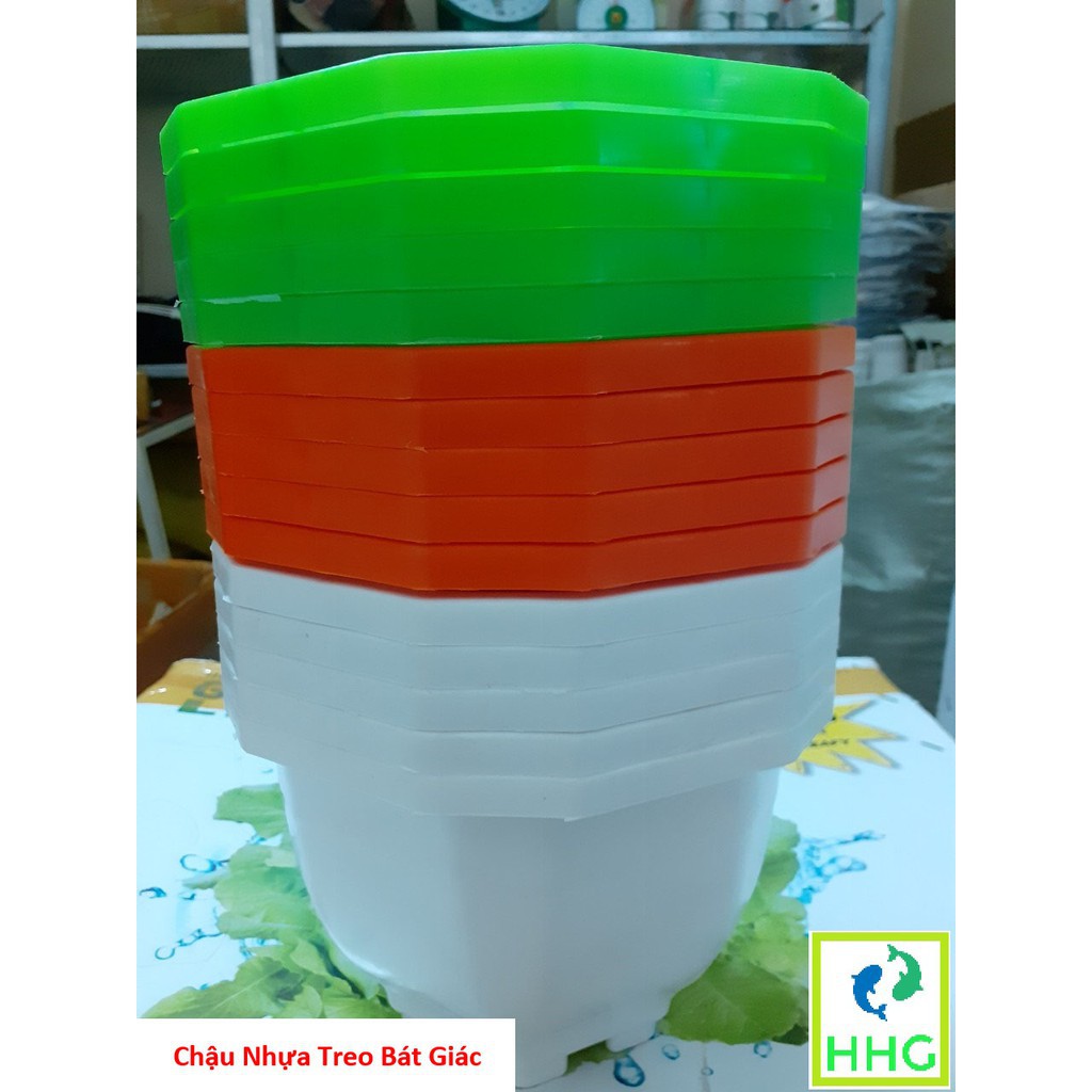 Chậu bí và chậu đa giác nhiều màu, có móc treo.Thích hợp trồng các loại hoa rủ