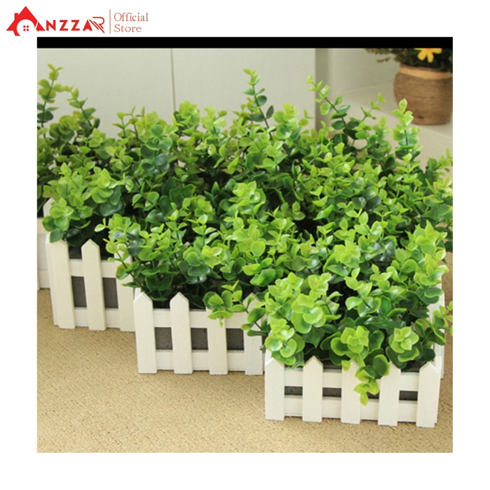 Chậu cây cảnh và hoa giả hàng rào gỗ 50cm trang trí ban công, decor kệ tủ, cầu thang xanh tươi Anzzar HR-50