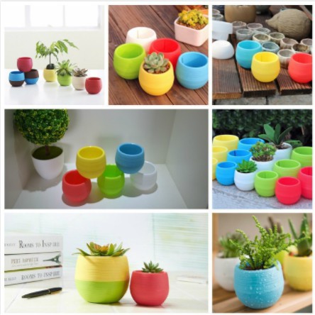 Bộ chậu hoa kiểu dáng đáng yêu, với nhiều màu sắc khác nhau và được làm từ chất liệu cao cấp