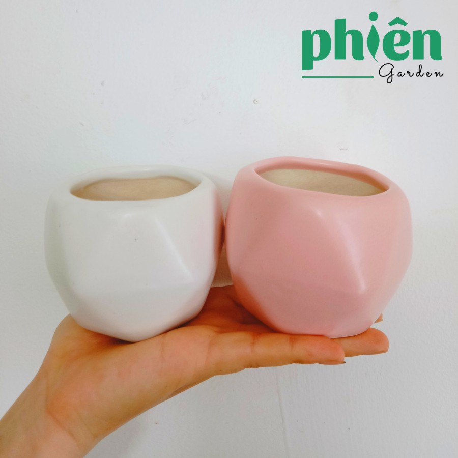 Giới thiệu Chậu Đa Giác thấp, Chậu gốm tráng men Bát Tràng trồng cây sen đá, cây văn phòng