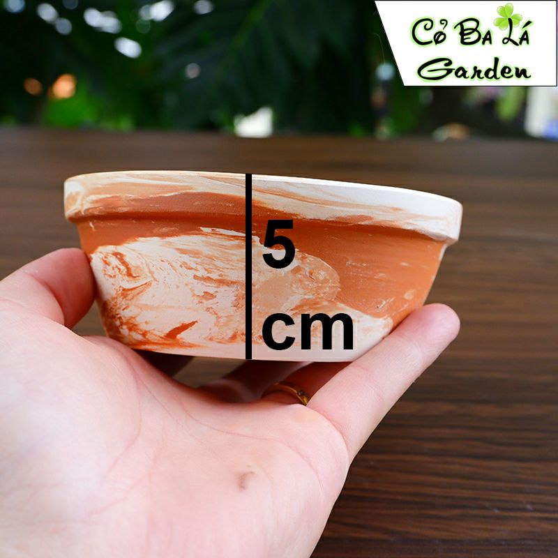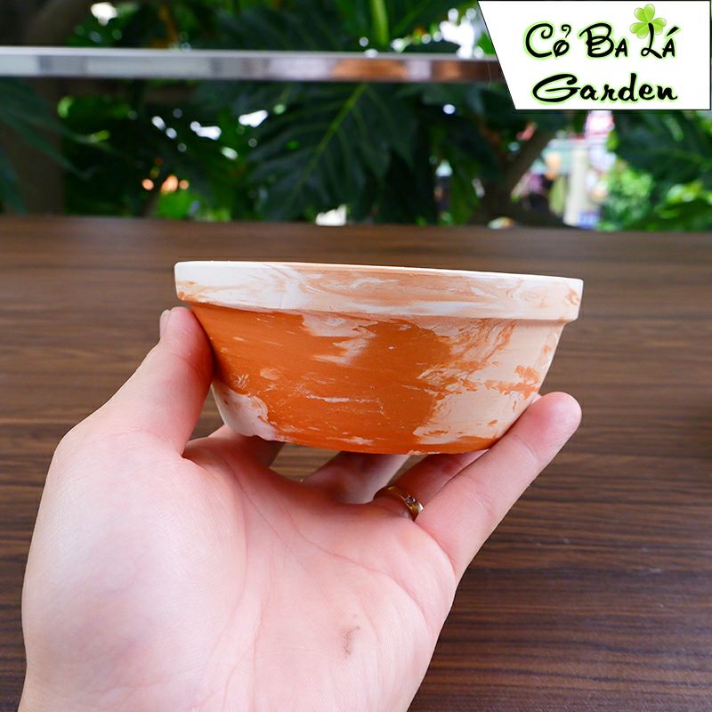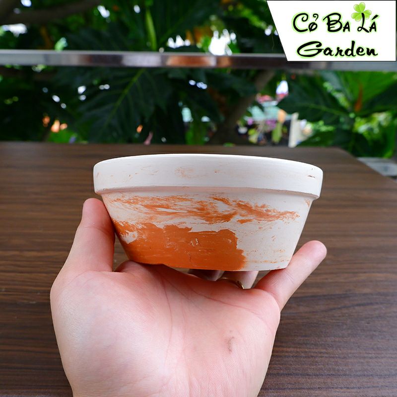 Chậu đất nung tôLoại đất : đất pha, đất loang ( loại pha đất đỏ và đất trắng) kích thước 12cmx5cm