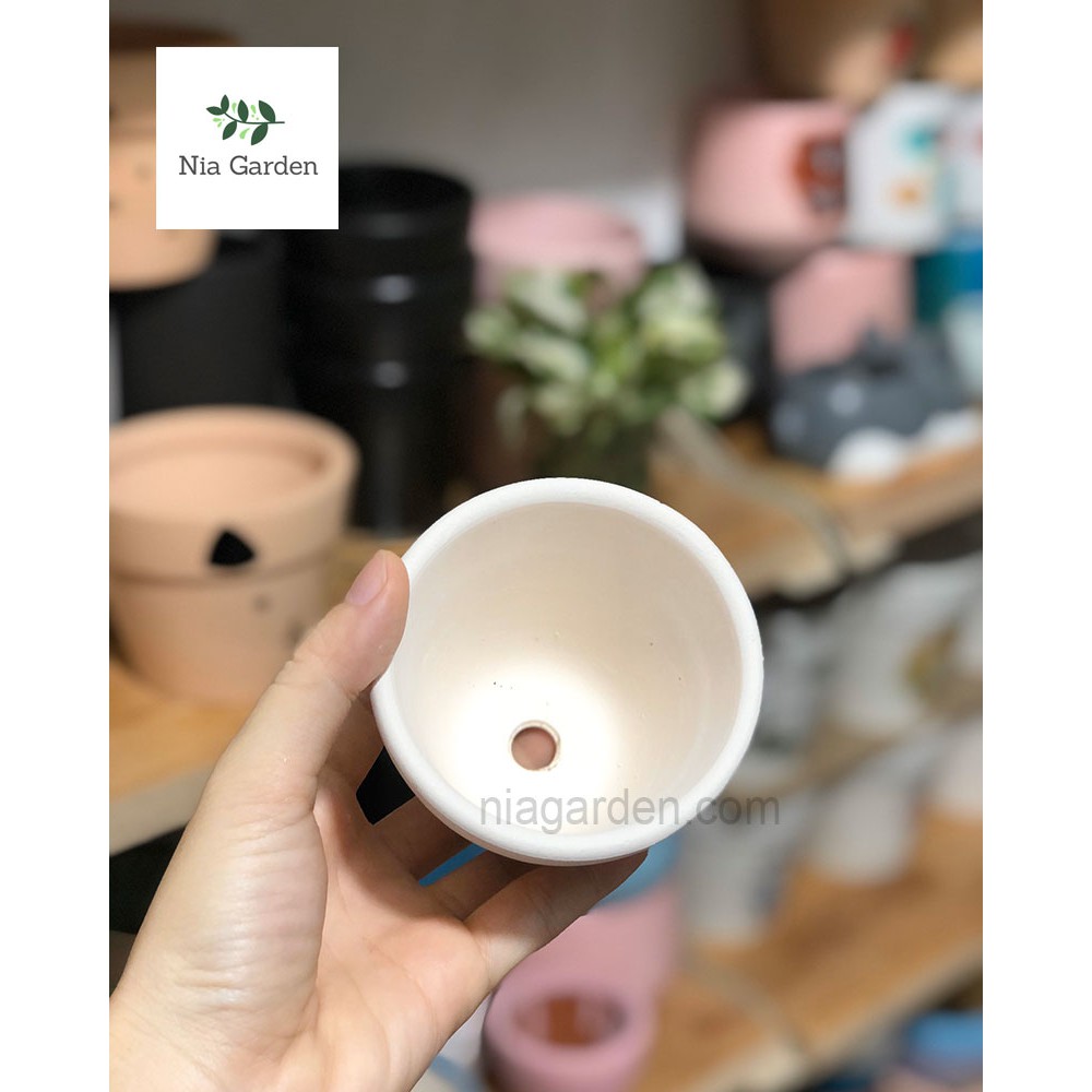 Chậu đất nung trồng sen đá xương rồng gờ cao trắng nhỏ mini Nia Garden N1