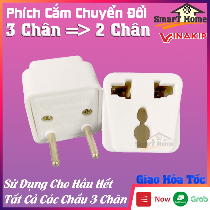 ✅ Phích cắm điện Vinakip chuyển đổi ổ 3 chấu thành 2 chấu - chuyển đổi sạc 3 chân - đầu nối ổ cắm 3 cực đa năng 10A 250V