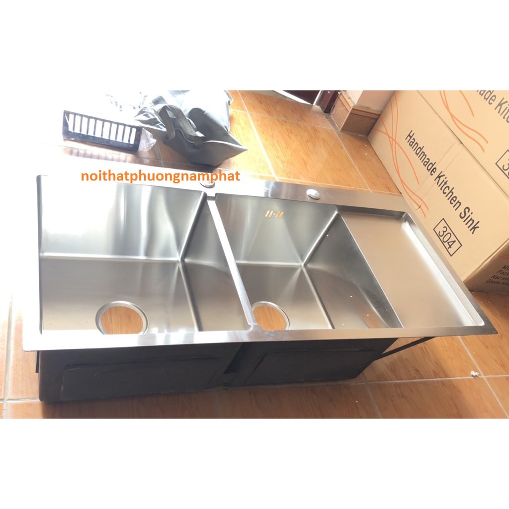{CHẬU ĐÚC} Chậu Rửa Chén Bát 100% INOX SUS 304 N1 10048 NA.GRAND và Xả Chậu to 2 lớp thoát nước nhanh