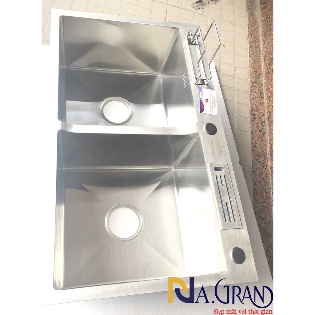 Giới thiệu [CHẬU ĐÚC DÀY] Chậu Rửa Chén inox SUS 304 N16 8245 NA.GRAND CÀI DAO THỚT và bộ xả chậu to 2 lớp bao không tắc nước