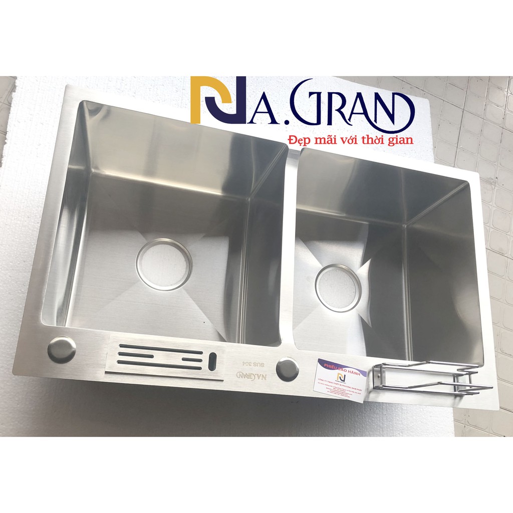 Thương hiệu: NA.GRAND, được khắc trên mặt chậu, và chữ SUS 304 thể hiện inox tốt