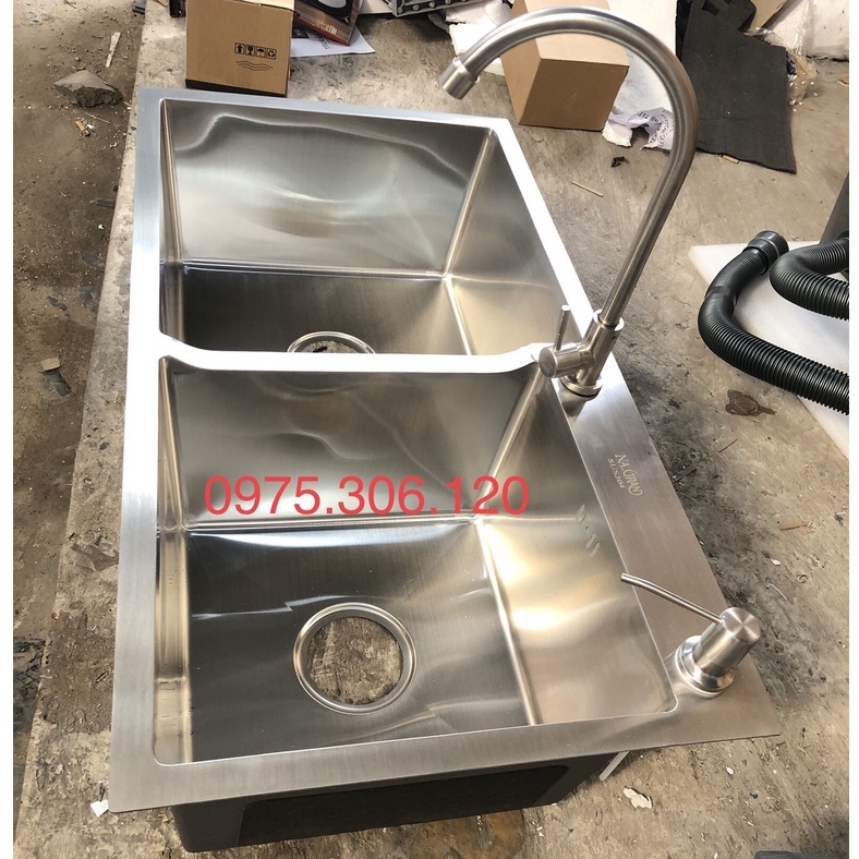 [CHẬU ĐÚC GIÁ ĐỔ SỈ] Chậu Rửa Chén inox SUS 304 N7 8245 NA.GRAND và xả và Rổ Đa Năng và Vòi Chén và Bình Nước Rửa Chén