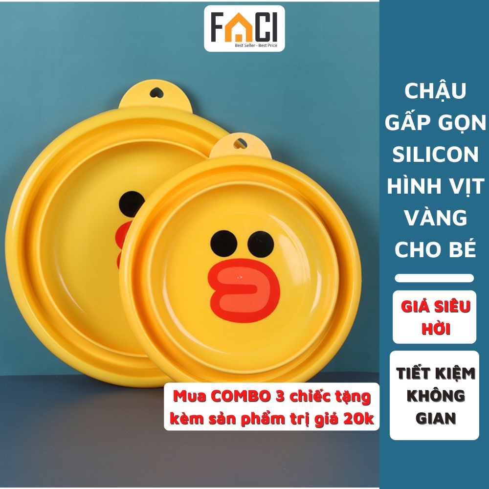 Nhà cửa & Đời sống > Dụng cụ chăm sóc nhà cửa > Chậu, xô & gáo nước || Chậu gấp gọn silicon hình vịt vàng rửa mặt cho béCòn hàng