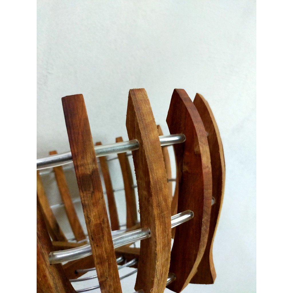 - Các nan gỗ được liên kết với nhau bởi 3 vòng thép kẽm không rỉ có bọc ống tio trắng cho nét tinh tế, tránh rễ lan bám làm nóng rễ.