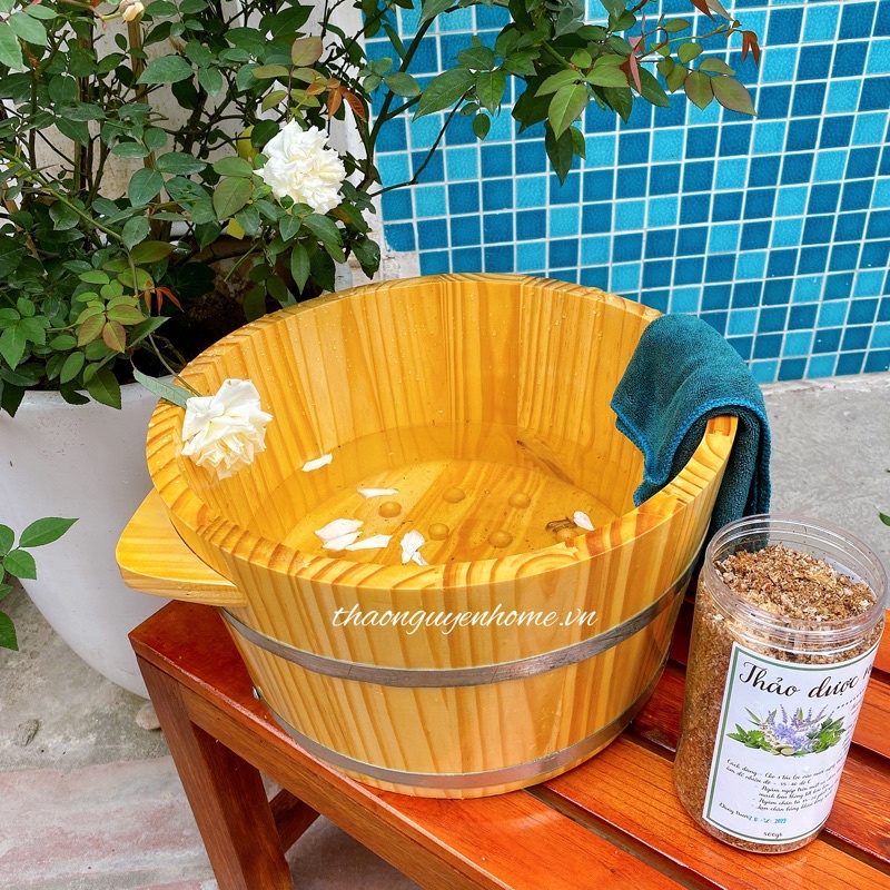 Đông cũng như hè, ngâm chân trước khi đi ngủ rất tốt cho sức khoẻ. T đã duy trì việc này rất nhiều năm, ngâm thảo dược với nước ấm 40 độ ngập mắt cá chân. Mẹ bầu, cô chú lớn tuổi, người bị ngủ kém cực kỳ phù hợp: tinh thần lại sảng khoái, lưu thông, Chốngg lạnh chân tay, goutt. đặc biệt giảm mồ hôi chân, khử mùi hôi chânNgoài ra tại sao lại phải dùng chậu gỗ thông?