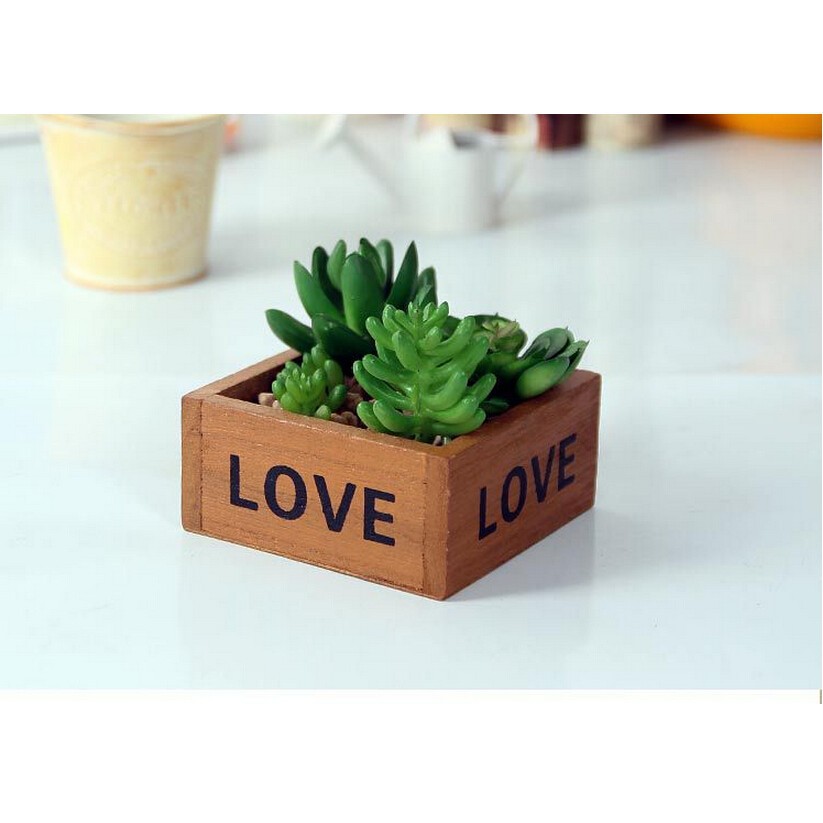 Chậu gỗ trồng cây hình vuông trồng tiểu cảnh sen đá, xương rồng - chậu in chữ LOVE