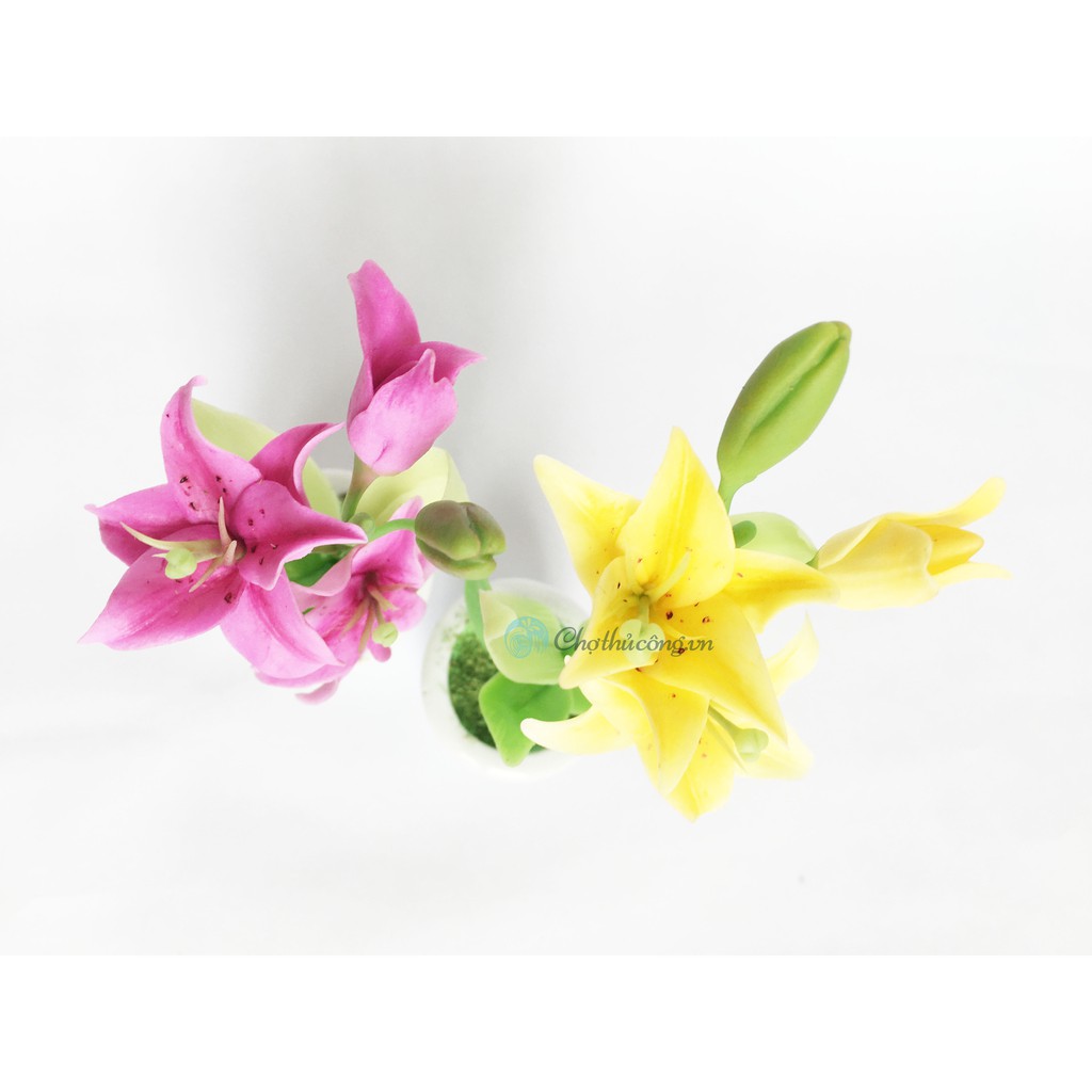 ✔️ Sản phẩm được làm hoàn toàn thủ công từ đất sét Nhật Thái tỉ mỉ và có gân chi tiết. Hoa được cắm vào chậu gốm mini xinh xắn, phủ nền bằng đất sét.