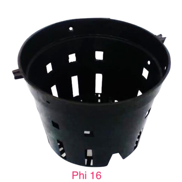 Chậu trồng đường kính 16cm được làm từ nhựa nhẹ nhưng bền chắc. Chậu có lỗ thoát nước xung quanh và dưới đáy, có chỗ để treo móc. Thích hợp để trồng lan hoặc các loại cây treo khác.