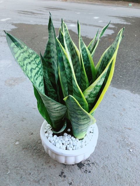Chậu Lưỡi Hổ ❤️🥰Lưỡi hổ có tác dụng thanh lọc không khí, hấp thụ chất gây ô nhiễm, cải thiện không gian sống, vào ban đêm cây nhả oxi nên rất phù hợp để phòng ngủ. Cây mang ý nghĩa phong thủy trừ tà xua đuổi ma quỹ, đem lại may mắn và tài lộc cho gia chủ. Cây phù hợp để bàn, để trong nhà, phòng ngủ...