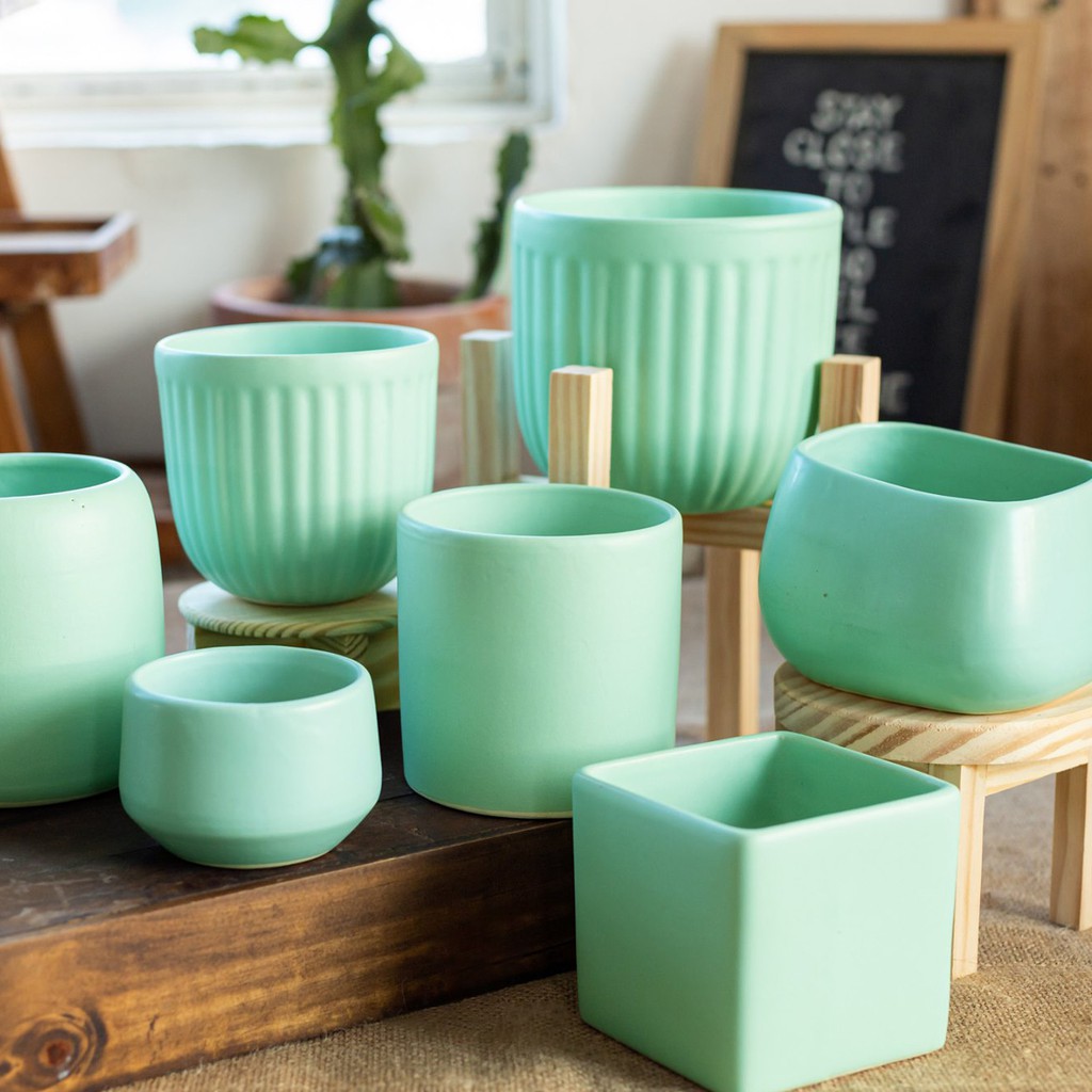 Nhà cửa & Đời sống > Làm vườn > Chậu cây || Chậu men sứ trồng cây để bàn Mochi kẻ sọcCòn hàng