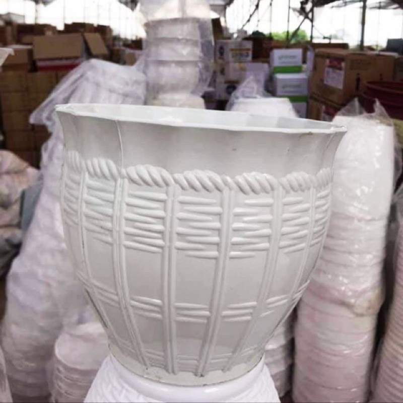 Chậu nhựa giả đan lan miệng loe màu trắng loại dày đẹp- Kích thước : 260x220x160