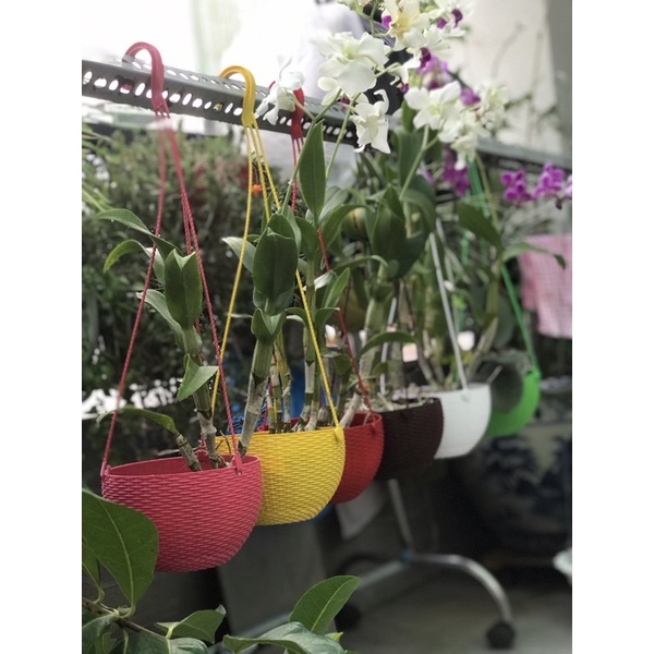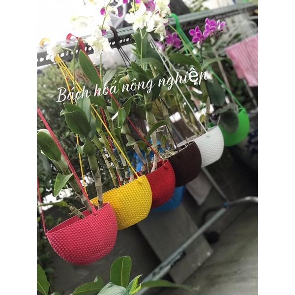 Chậu treo mây bầu bằng nhựa.Có 6 màu: vàng tươi, hồng, đỏ, xanh lá, nâu, trắng