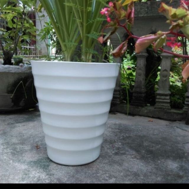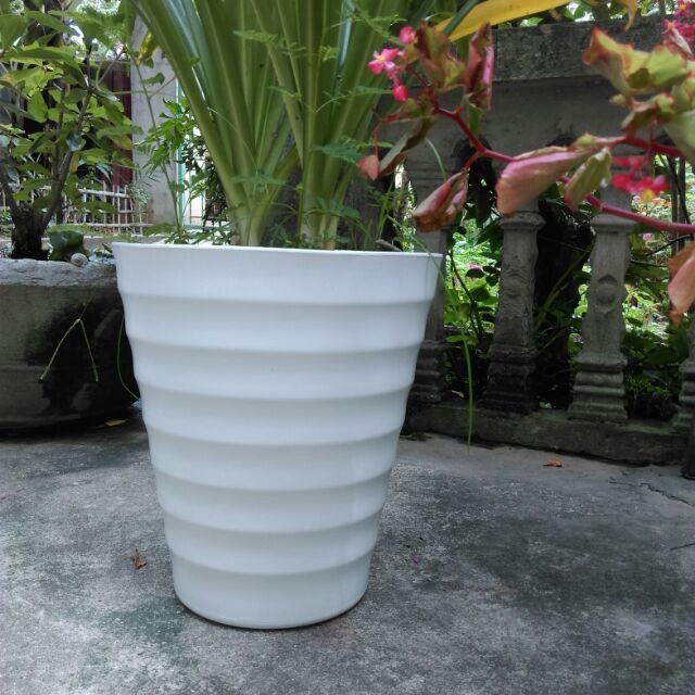 Chậu vòng tròn to trắng: miệng 32 x đáy 20 x cao 36 cm dùng đĩa phi 23 cm