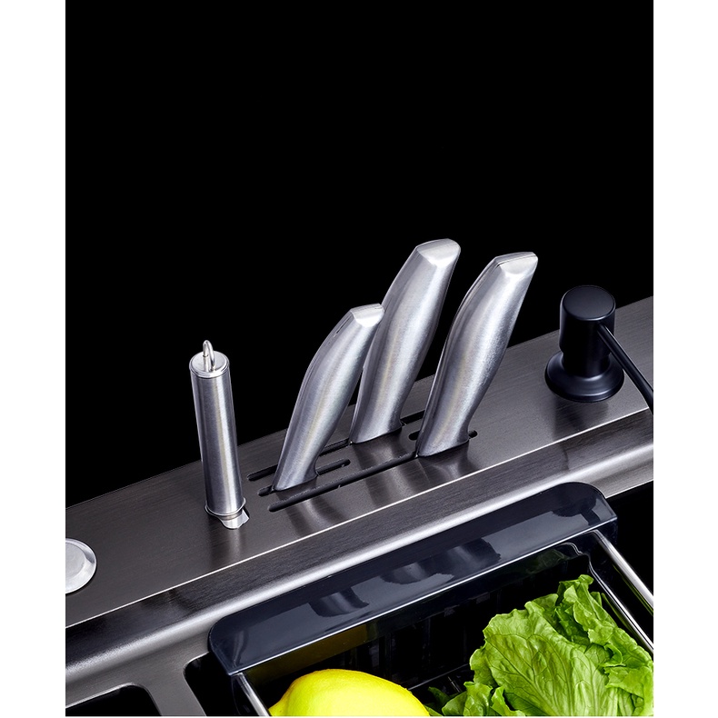 Chậu rửa bát (chén ) giật cấp inox 304 phủ nan đen có cài dao - Bảo hành 3 năm