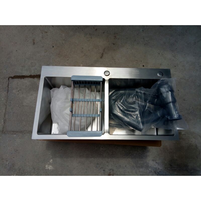 Nhà cửa & Đời sống > Dụng cụ & Thiết bị tiện ích > Chậu rửa & vòi nước || Chậu rửa bát đôi đúc nguyên khối inox 304 , kích thước : 82*45*23Còn hàng