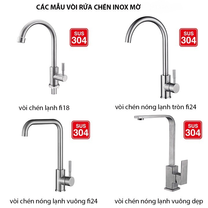- Các mẫu vòi rửa chén trong combo là mẫu vòi Astosi inox 304, bề mặt inox mờ