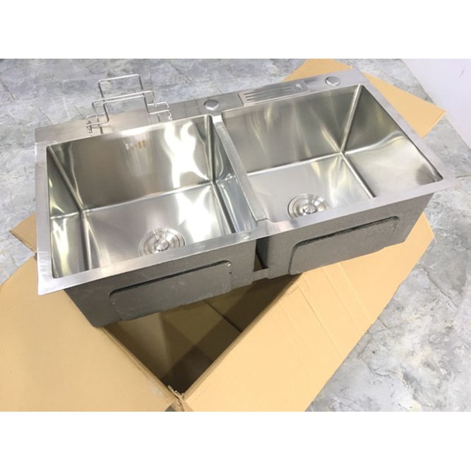 📌 1 chậu rửa chén 2 hộc lớn inox 304, kích thước 82x45x23cm, có gác cài thớt và để dắt dao