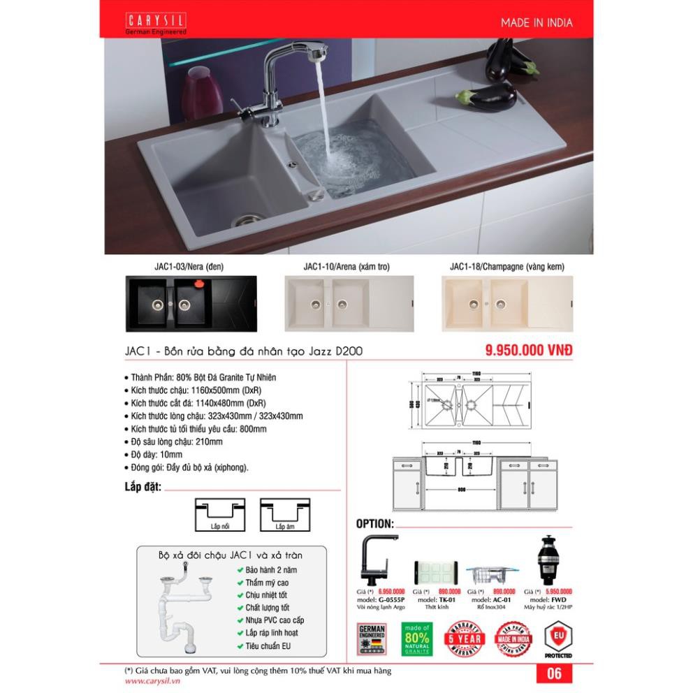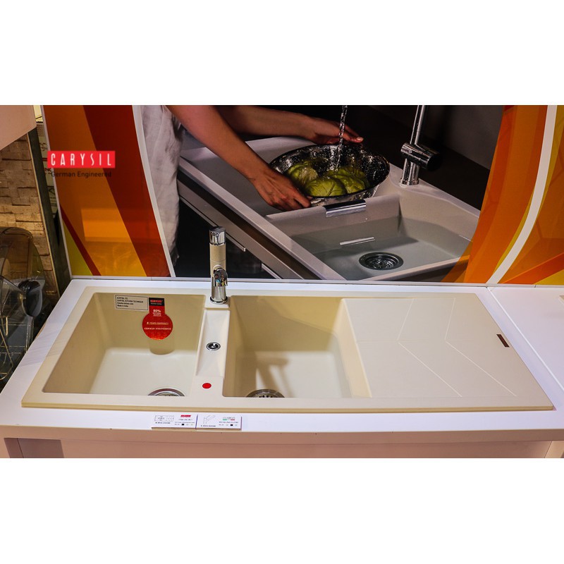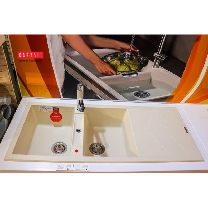 Nhà cửa & Đời sống > Dụng cụ & Thiết bị tiện ích > Chậu rửa & vòi nước || Chậu Rửa Chén Carysil Đá Granite 2 Hố Có Cánh JAC1-18 - Màu Vàng KemCòn hàng