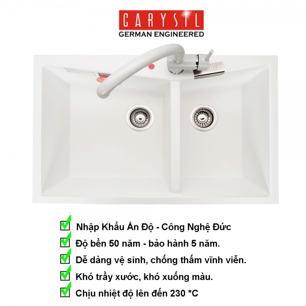 Nhà cửa & Đời sống > Dụng cụ & Thiết bị tiện ích > Chậu rửa & vòi nước || Chậu rửa chén đá CARYSIL LMC5, công nghệ Đức, bảo hành 05 nămCòn hàng
