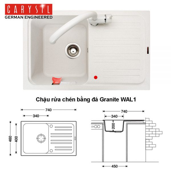 Giới thiệu Chậu rửa chén đá CARYSIL WAL1, Made in Ấn Độ, công nghệ Đức, bảo hành 05 năm