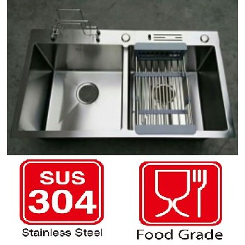 Chậu rửa chén inox304 đúc Tặng 1Rổ inox đa năng + 1Bộ Xả +1Khay để dao + 1khay thớt