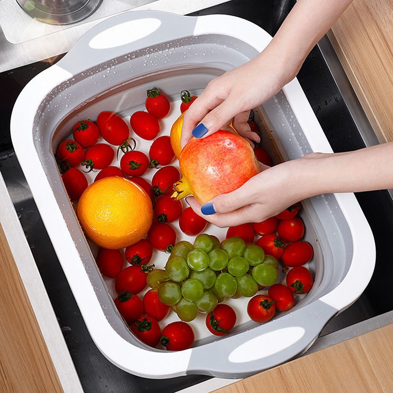Chậu rửa gấp gọn kèm thớt đa năng - Chậu kiêm thớt gấp gọn cao su, mặt nhựa cứng