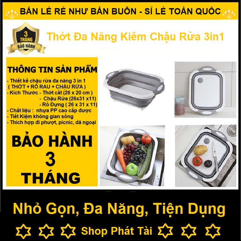Với chất liệu nhựa cứng PP và silicol dẻo dai chỉ cần kéo tuột lên chiếc thớt thái chặt đồ của b sẽ thành chiếc chậu rửa, và 1 chiếc rổ đựng đồ tiện lợi.