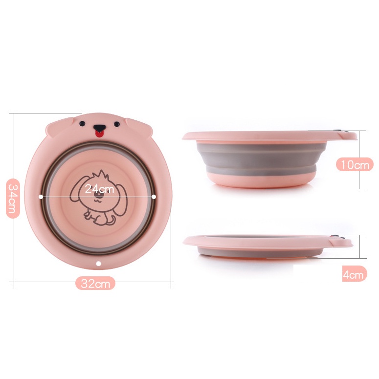 Chậu Rửa Mặt Gấp Gọn Silicol Chất Liệu An Toàn, Thau Rửa Mặt Hình Dễ Thương Size 34cm