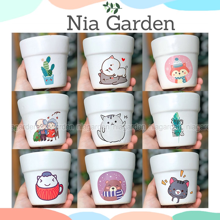 Nhà cửa & Đời sống > Làm vườn > Chậu cây || Chậu sứ gờ cao trung in hình trồng cây cảnh sen đá xương rồng mini Nia Garden N2Còn hàng